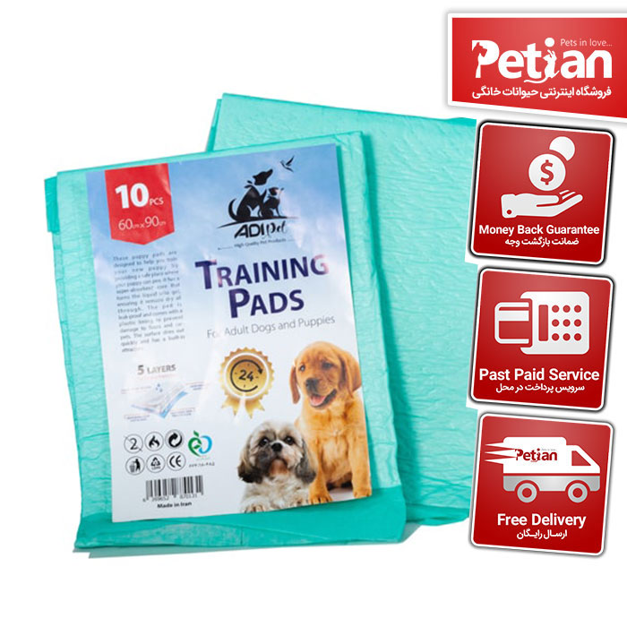 پد ادرار سگ یک وسیله کمک آموزشی بسیار پر کاربرد است. تا زمانی که سگ به صورت کامل محل های ادرار مناسب را نیاموخته، استفاده از این پد ها می تواند تا حدود زیادی خیالتان را راحت کند. AdiPet این پد ها را با قدرت جذب بالا تولید کرده. به نحوی که پس از مایع ادرار، به دلیل جذب داخلی، بلافاصله سطح آن خشک می شود. به اضافه اینکه یک لایه پلاستیکی در زیر این پد تعبیه شده که از نفوذ مایع به کف و فرش محل شما جلوگیری می کند.