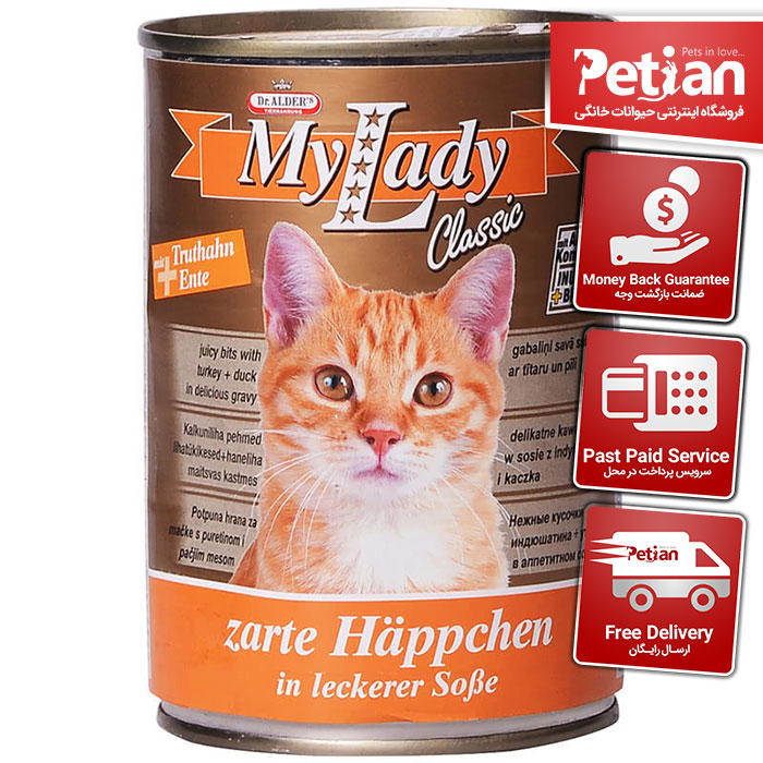 کنسرو گوشت بوقلمون برای گربه بالغ دکتر آلدر : Dr. Alder’s My Lady Turkey & Duck